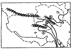 (3)我國(guó)“三江源自然保護(hù)區(qū)”成立,“三江”是圖中②瀾滄江、③長(zhǎng)江、④黃河,因?yàn)楹0胃,多雪山冰川,眾多河流發(fā)源。