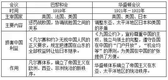 巴黎和會(huì)與華盛頓會(huì)議的比較: