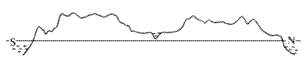 在等高線地形圖中,如果沿不同方向對鞍部作剖面圖,可得到兩種完全不同的地形剖面圖。沿兩座山峰連線方向看,兩邊高,中間低;