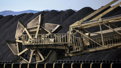 在日本的一個港口,煤炭正等待著被運走。