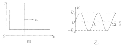 如圖甲所示,磁場垂直于xoy平面,大小只在沿x 軸方向按圖乙所示規(guī)律發(fā)生變化。當(dāng)導(dǎo)體桿以速度v0 沿x軸勻速運(yùn)動時(shí),桿產(chǎn)生的是正弦式交變電流。