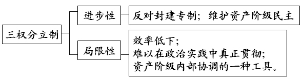 ①積極作用:三權(quán)分立和權(quán)力制衡的原則對于反對封建專制,調(diào)節(jié)資產(chǎn)階級內(nèi)部各集團的利益,維持資本主義民主制度,有其積極作用。