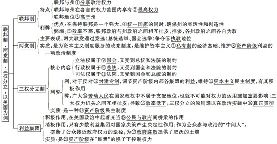 聯(lián)邦制、兩黨制、三權(quán)分立:以美國為例:
