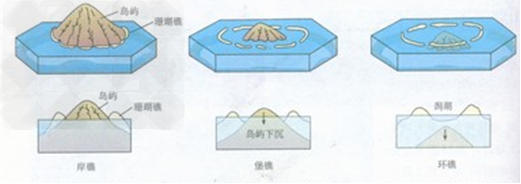 珊瑚礁在島嶼周圍生長(zhǎng),形成岸礁;