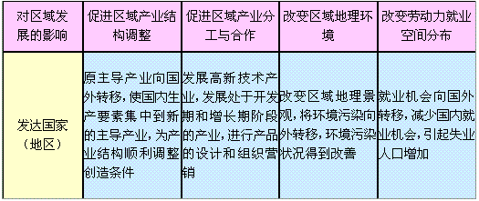 產業(yè)轉移對發(fā)達國家(地區(qū))和發(fā)展中國家(地區(qū))的影響存在著差異,其差異可列表比較: