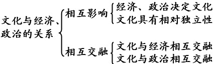 (1)經(jīng)濟是基礎(chǔ),政治是經(jīng)濟的集中表現(xiàn),文化是經(jīng)濟和政治的反映。一定的文化由一定的經(jīng)濟、政治所決定,又反作用于一定的政治、經(jīng)濟,給予政治、經(jīng)濟以重大影響。