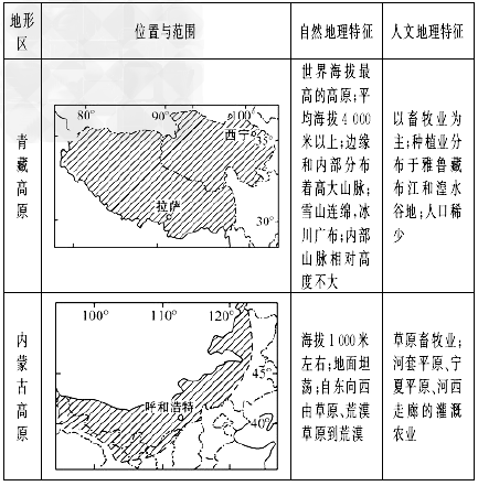 四大高原區(qū)域特征: