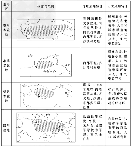 四大盆地: