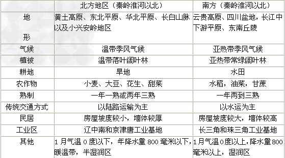 一、北方、南方地區(qū)