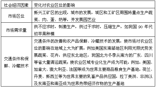影響農(nóng)業(yè)的區(qū)位因素在不斷地變化。自然因宜比較穩(wěn)定,社會經(jīng)濟(jì)因素發(fā)展變化較快。